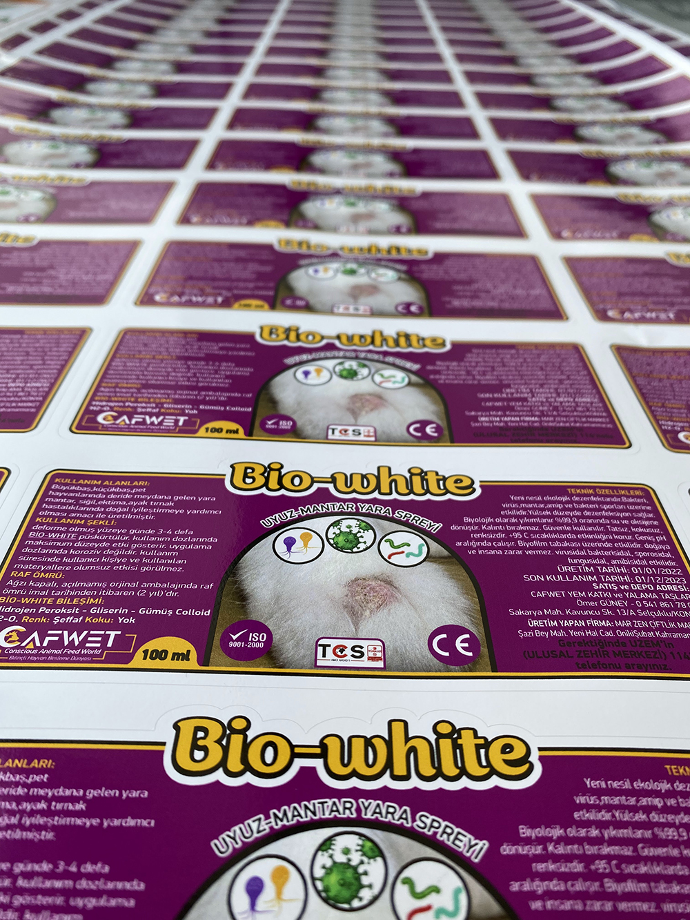 Folyo etiket üzerine her renk baskı uygulanabilmektedir. Etiketin kesimlerinde sağa sola kaymalar olmaz, oldukça kaliteli kesimler yapıyoruz. Folyo etiket belli kalıplara sahip olan bir etiket türüdür. Beyaz, altın, gümüş ya da şeffaf renklere sahip olmakla birlikte üzerine farklı tasarımlar da yapılabilmektedir.